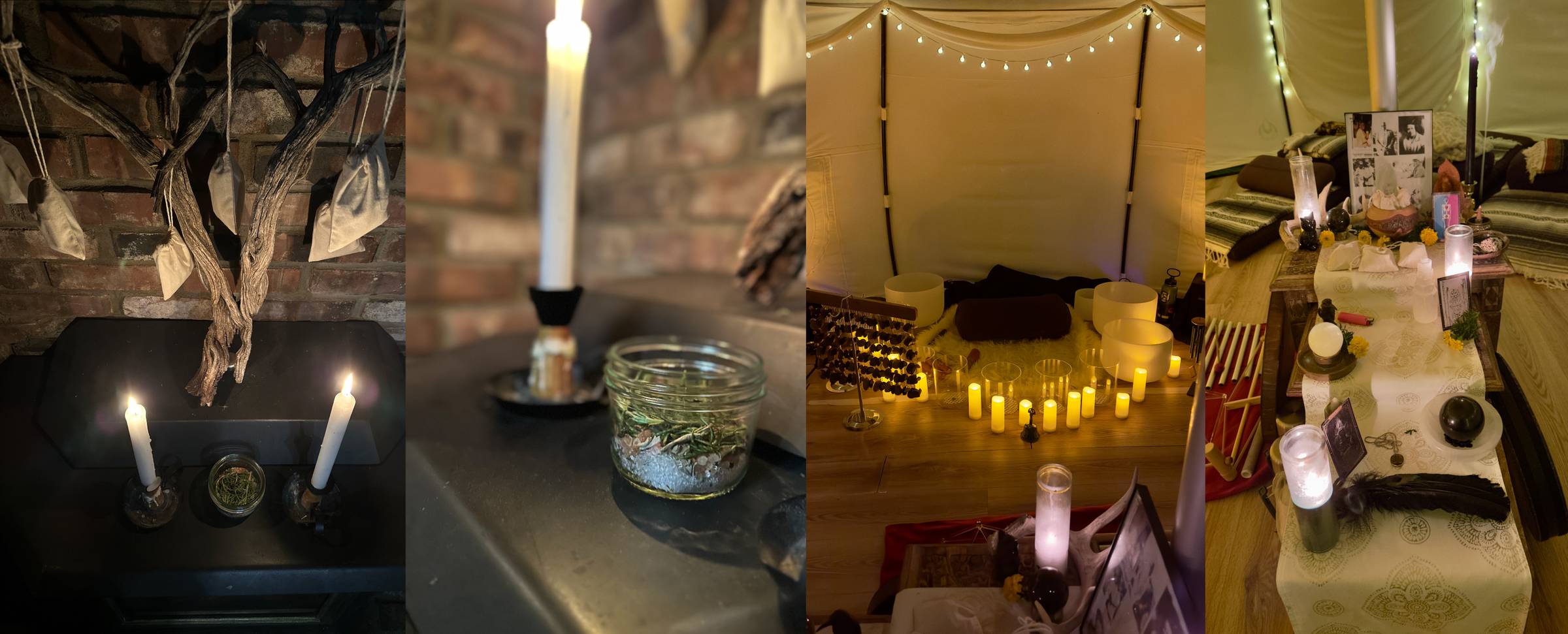 Pictured above is a ceremonial bath soak with salt and herbs, and our sound journey space for the evening. It changes every time, lol.